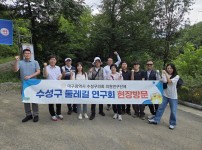 수성구 둘레길 연구회, 범어공원 순환산책로 두 번째 현장점검 실시대구 수성구의회 의원연구단체 ‘수성구 둘레길 연구회’는 지난 6일 오전, 수성구 범어공원 순환산책로에서 두 번째 현장점검을 실시하며 실효성 있는 정책 마련에 박차를 가했다.이번 방문은 지난 2월 진행한 첫 점검에 이은 연속 활동으로, 둘레길 조성의 성과와 과제를 재확인하고 정책 적용 가능성을 구체화하기 위해 마련됐다.제9차 현장방문에는 최진태·김희섭·정경은·전학익·최명숙 의원을 비롯해 의회사무국과 수성문화재단 관계자 등 총 13명이 참여했다.참석자들은 수성국민체육센터 …