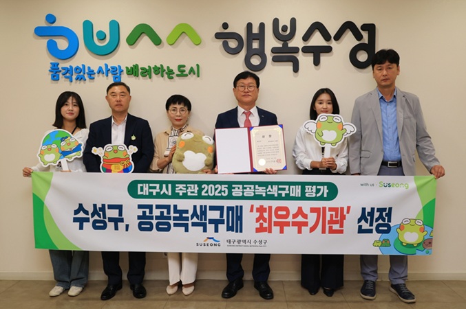 대구 수성구가 대구시 주관 ‘2025 공공녹색제품 구매 평가’에서 최우수기관으로 선정되며 친환경 행정 선도 지자체로 자리매김 했다.